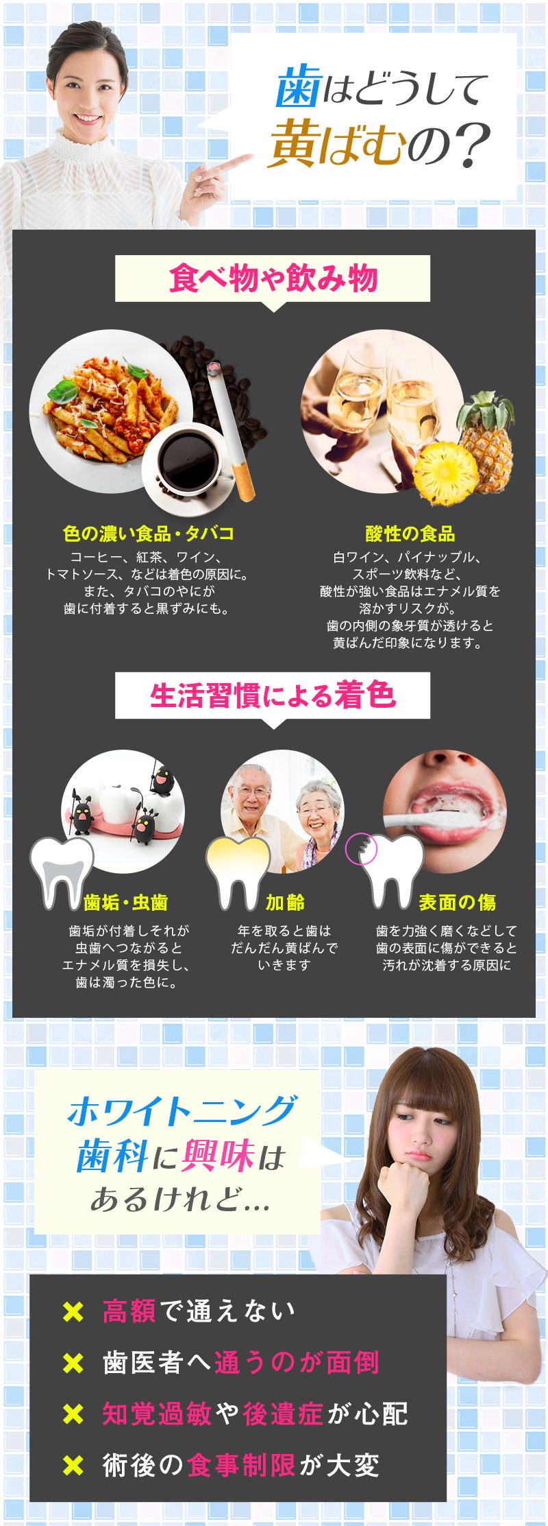- 仕事では外回りが多くて歯の黄ばみが気になる