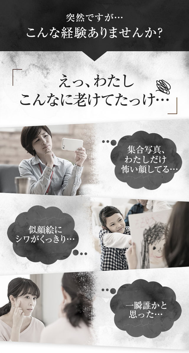 - 肌のシワが濃くなり、実年齢以上の年齢に見られてしまう。